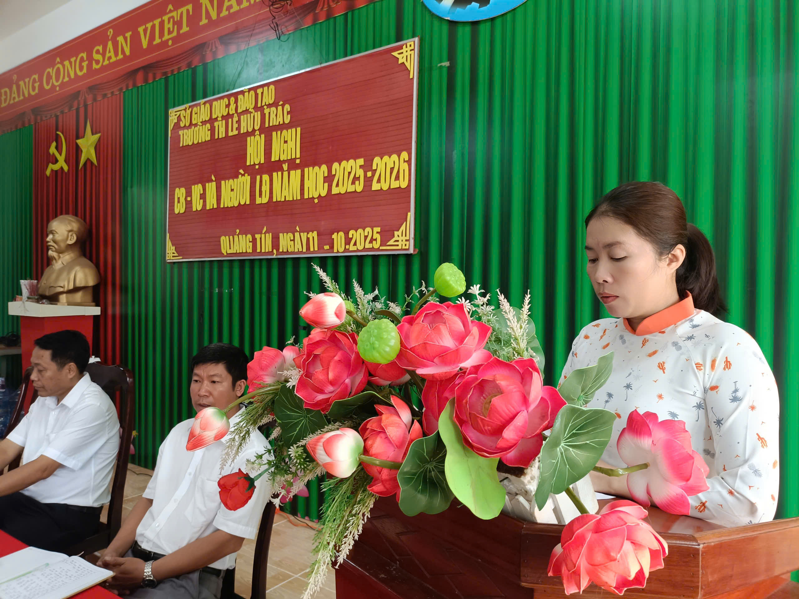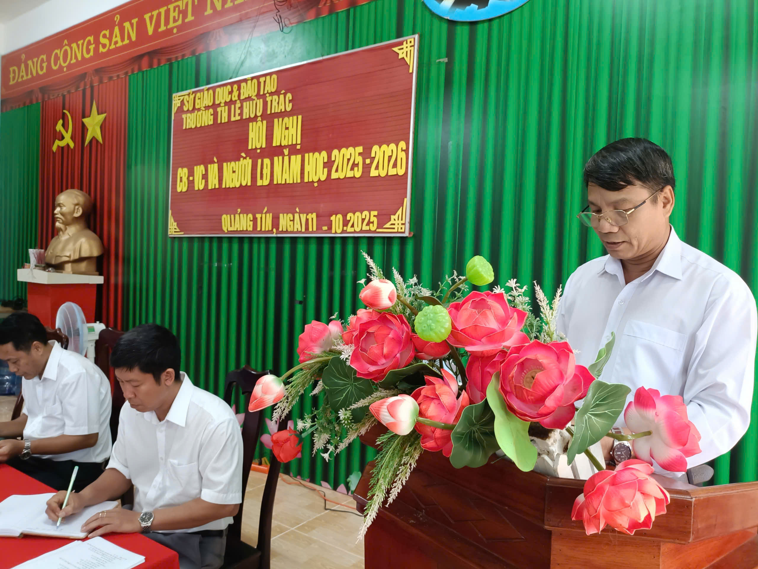 Sáng ngày 11 /10/2025 tại văn phòng Trường Tiểu học Lê Hữu Trác tổ chức Hội nghị cán bộ, viên chức và người lao động năm 2025.