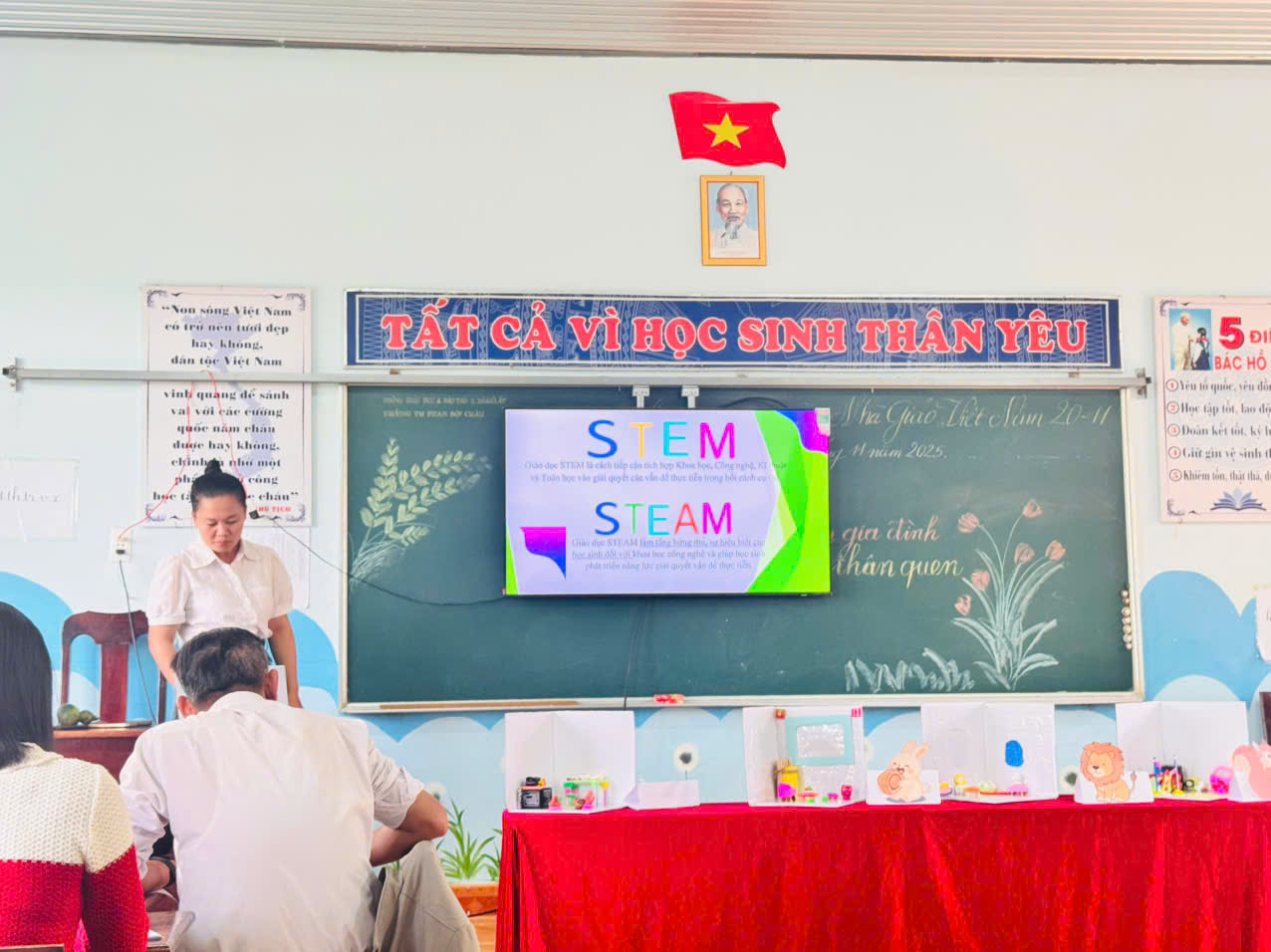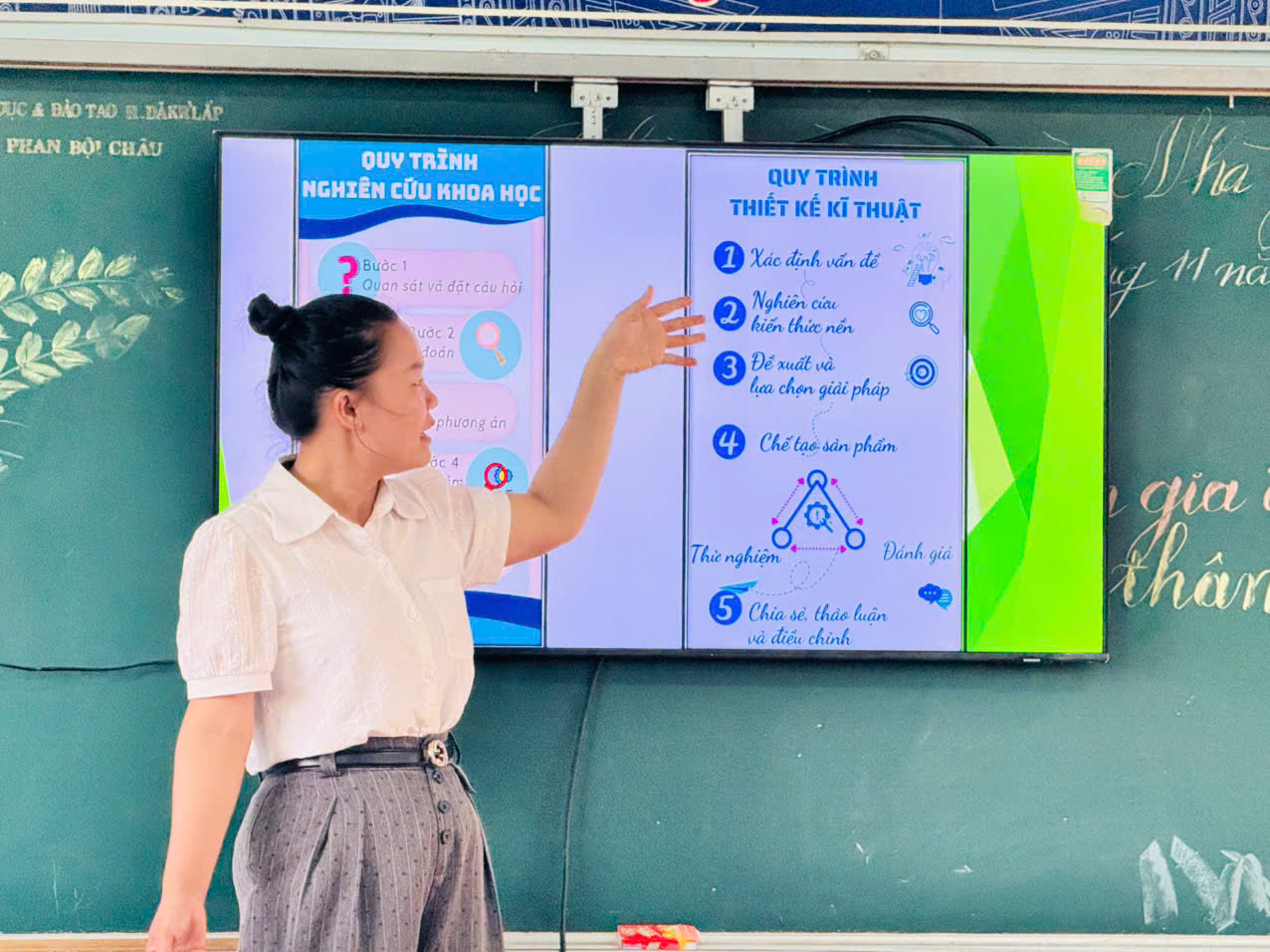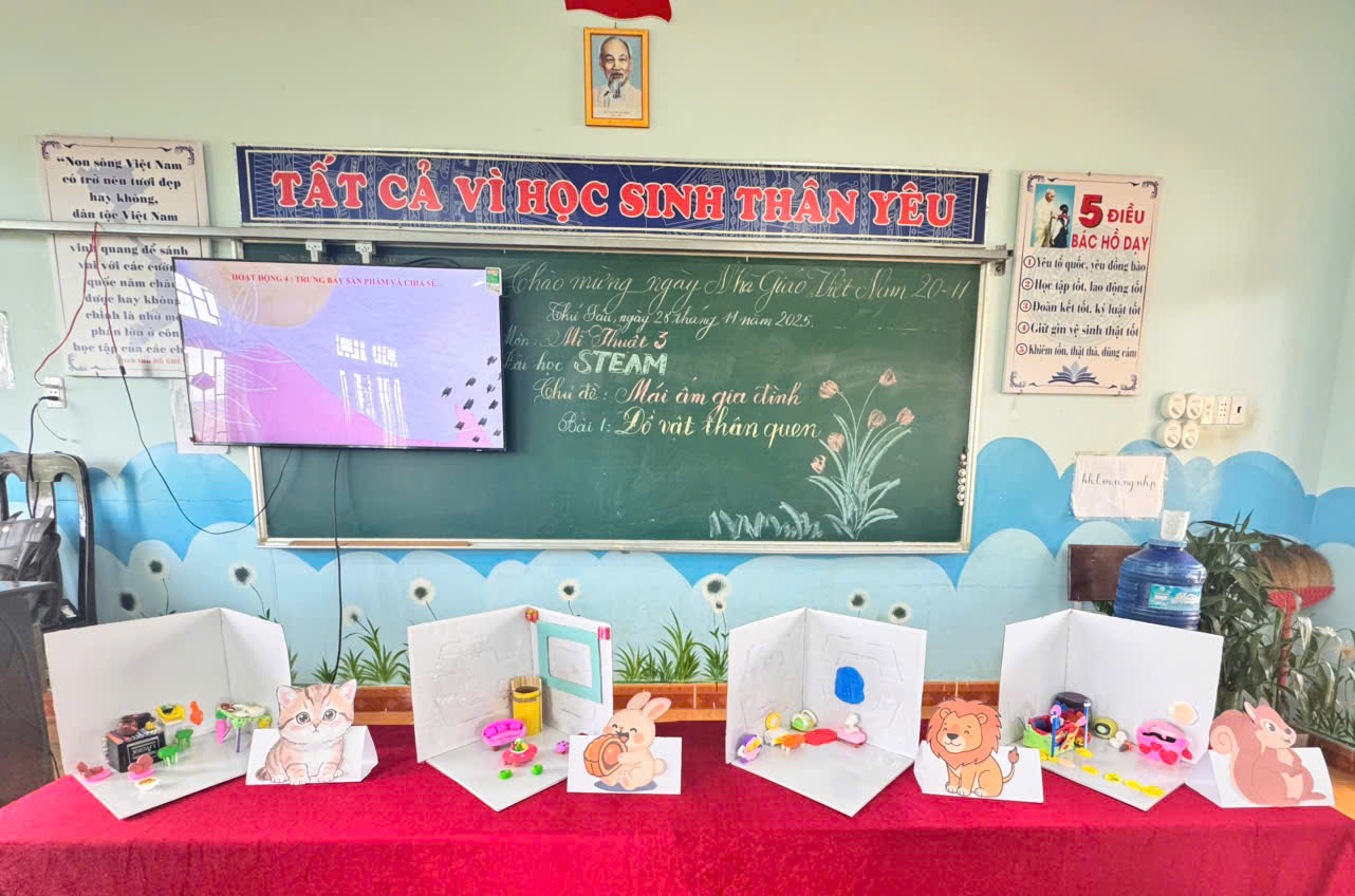 Cô đã tổ chức tiết học minh hoạ ứng dụng STEAM trong môn Mỹ thuật, giúp giáo viên toàn trường quan sát trực tiếp cách lồng ghép kiến thức khoa học – nghệ thuật – sáng tạo vào giờ học. -