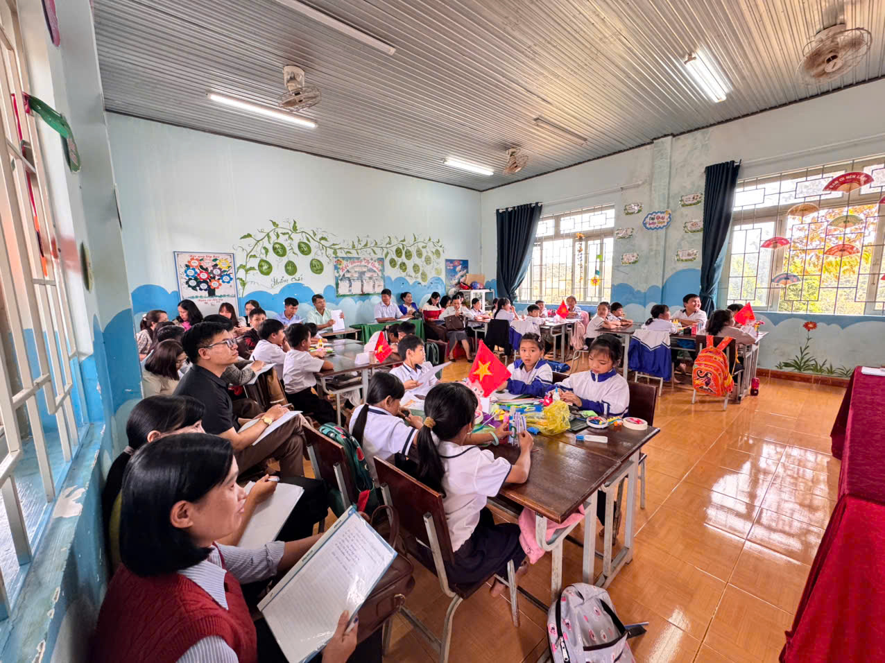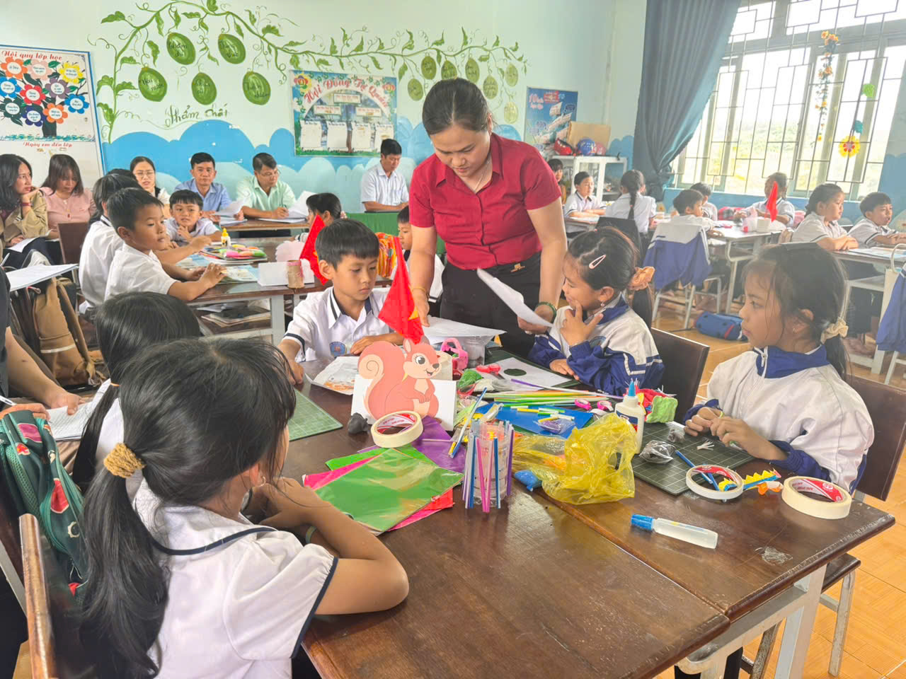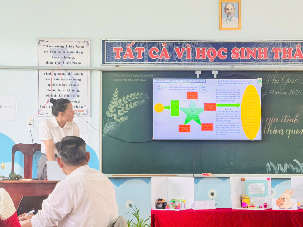 Cô đã tổ chức tiết học minh hoạ ứng dụng STEAM trong môn Mỹ thuật, giúp giáo viên toàn trường quan sát trực tiếp cách lồng ghép kiến thức khoa học – nghệ thuật – sáng tạo vào giờ học. -